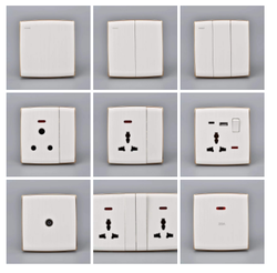Schakelaar, stopcontact, lamphoder, stekker, breker box,